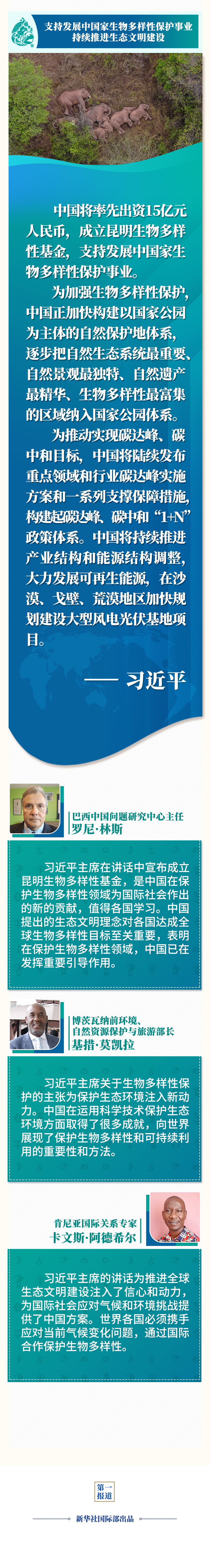 习近平主席12日下午以视频方式出席在昆明举行的《生物多样性公约》第十五次缔约方大会领导人峰会并发表主旨讲话。多国专家学者和政府官员高度评价习近平主席的主旨讲话,认为讲话提出开启人类高质量发展新征程的重要倡议,为共同构建地球生命共同体凝聚强大合力,中国负责任大国的担当为推进全球生态文明建设注入新的动力。