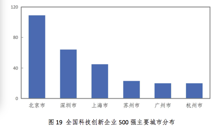 在入围企业的城市分布上,北京市共有109家企业,排名第一,深圳市共有64家企业,排名第二,上海市、苏州市分别拥有45家、23家企业,分列第三、四位,广州市和杭州市各拥有20家企业并列第五位。报告显示,我国一线城市的创新资源集聚性高,北京市尤为突出。无论在省份或者城市的横向对比中,北京的创新主体密集度都最高,成为我国的科技创新高地。