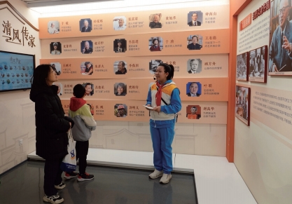 2025年3月15日,在中国妇女儿童博物馆“中华好家风”主题展厅,小学生志愿讲解员向观众讲解“清风传家”故事。