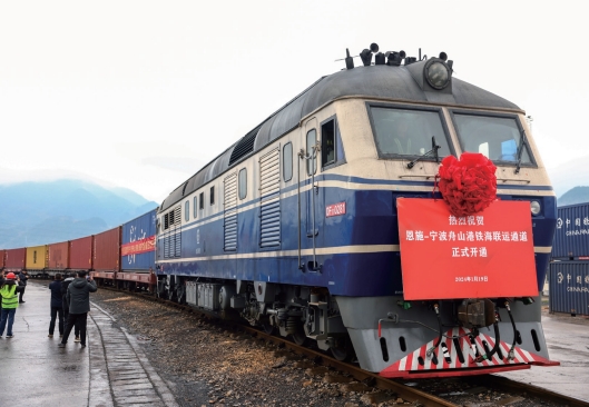2024年1月,恩施至宁波舟山港铁海联运通道正式开通。“恩施硒茶”搭乘铁海联运快车飘香海外。