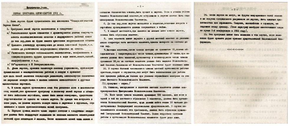由于当时党组织处于秘密状态,《中国共产党第一个纲领》的中文原件未能保存。如今,我们看到的版本,源自1956年苏共中央移交的俄文档案,以及1960年美国学者发现的陈公博硕士论文附录中的英文版本,两种文本内容基本一致,仅第11条存在遗漏。
