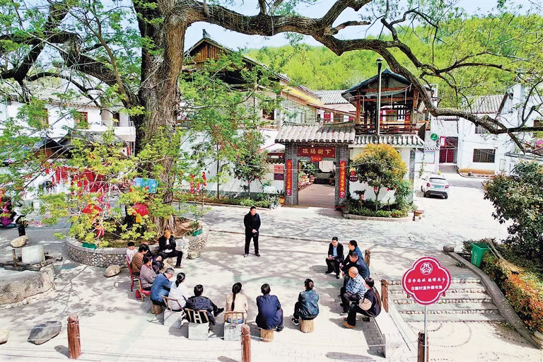 河南省南阳市西峡县丁河镇木寨村党支部以村里一棵400余年枫杨树为中心,打造“枫下说事”邻里议事“微阵地”,让群众在轻松融洽的环境中表达诉求、化解矛盾。