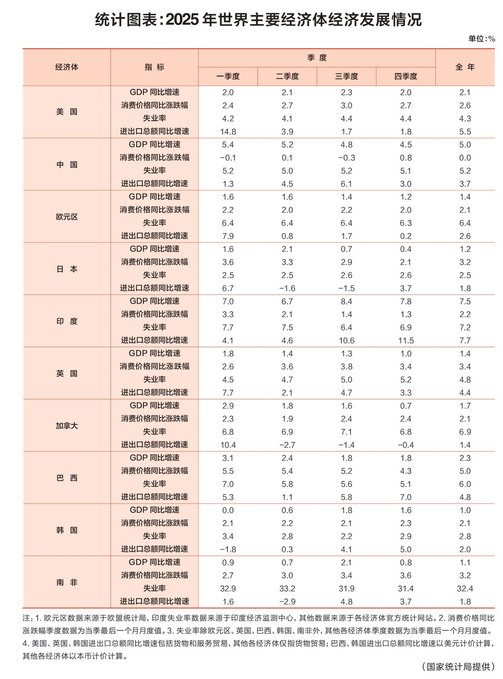 统计图表:2025年世界主要经济体经济发展情况