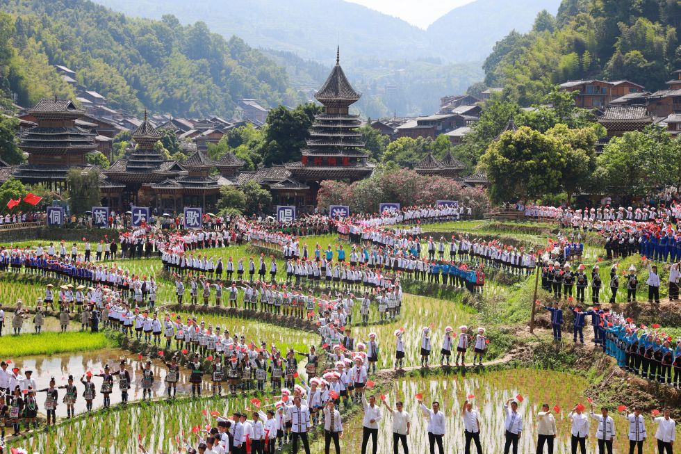 黎平县肇兴侗寨万人侗族大歌田园展示现场。申志力摄
